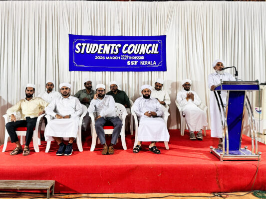 തൃശ്ശൂർ: എസ് എസ് എഫ് സംസ്ഥാന സ്റ്റുഡന്റ്സ് കൗൺസിലിന് തുടക്കമായി. സംസ്ഥാന പ്രസിഡൻ്റ് സയ്യിദ് മുനീറുൽ അഹ്ദൽ അഹ്സനിയുടെ അധ്യക്ഷതയിൽകേന്ദ്ര മുശാവറ അംഗം താഴപ്ര മുഹി യുദ്ധീൻ ഉസ്താദ് ഉദ്ഘാടനം ചെയ്തു . എസ് വൈ എസ് സംസ്ഥാന സെക്രട്ടറി കുഞ്ഞുമുഹമ്മദ് …