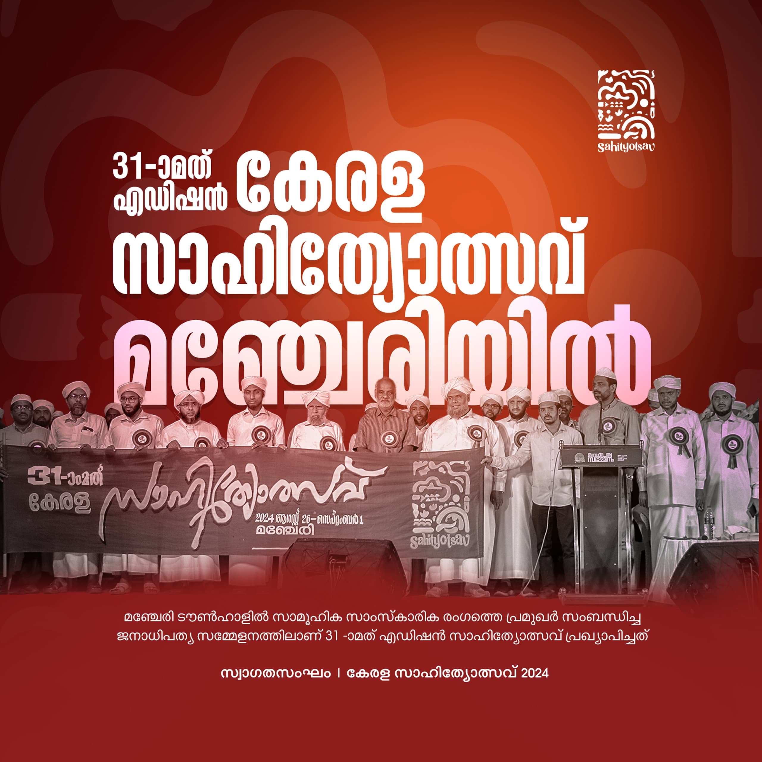 31-മത് എഡിഷൻ കേരള സാഹിത്യോത്സവ് 2024 ആഗസ്റ്റ് 26 മുതൽ സെപ്റ്റംബർ 1 വരെ മഞ്ചേരിയിൽ നടക്കും. മഞ്ചേരി മുൻസിപ്പൽ ടൗൺ ഹാളിൽ സാമൂഹിക സാംസ്കാരിക പ്രമുഖർ സംബന്ധിച്ച ജനാധിപത്യ സമ്മേളനത്തിൽ കേരള മുസ്ലിം ജമാഅത്ത് ജനറൽ സെക്രട്ടറി സയ്യിദ് ഇബ്റാഹീമുൽ ഖലീൽ അൽബുഖാരി സാഹിത്യോത്സവ് പ്രഖ്യാപനം നിർവഹിച്ചു.