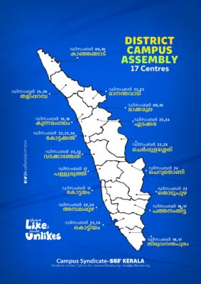 സംഗമങ്ങൾക്കും ആലോചനകൾക്കും വിശ്രമമില്ല. ഘനമുള്ള വിചാരങ്ങളുടെ നൈരന്തര്യത്തിൽ, ദേശത്തെയും സമൂഹത്തെയും കുറിച്ചുള്ള ആധിയിൽ പ്രവർത്തകർ പിന്നെയും ഒത്തുകൂടുകയാണ്. സൗഹൃദങ്ങളുടെ, പങ്കു വെപ്പിന്റെ രാഷ്ട്രീയമാണ് ചർച്ചയുടെ കാതൽ. ഇഷ്ടങ്ങൾ സ്വന്തം അവകാശമല്ലെന്ന്, അത് സമൂഹത്തിന്റെ കൂടിയാണെന്ന് വിദ്യാർത്ഥികളെ ബോധിപ്പിക്കാനുള്ള ശ്രമങ്ങൾ. വൈവിധ്യങ്ങൾ സൗന്ദര്യമാണെന്ന്, …