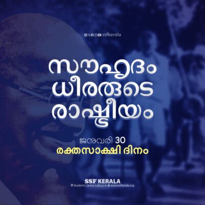 ഗാന്ധിയെ വെടിവെച്ചു വീഴ്ത്തിയവർ അദ്ദേഹം മുന്നോട്ട് വെച്ച രാഷ്ട്രീയ ആശയങ്ങളെ നിഷ്കാസിതമാക്കാൻ പരിശ്രമിക്കവേയാണ് വീണ്ടുമൊരു രക്തസാക്ഷിദിനം ആചരിക്കുന്നത്. സ്വതന്ത്ര മതേതര ഇന്ത്യക്ക് ഫാസിസമേൽപ്പിച്ച പരിക്കുകളിൽ ഏറ്റവും മുഖ്യവും പ്രഥമവുമായ ഒന്നായിരുന്നു ഗാന്ധി വധം. ഭയം ഭരണചക്രം കയ്യാളുന്ന കാലത്ത് രാഷ്ട്രപിതാവ് ഉയർത്തിയ …