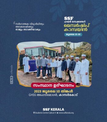 “സർഗാത്മക വിദ്യാർത്ഥിത്വം അവശേഷിക്കും; രാജ്യം ബാക്കിയാവും” എന്ന പ്രമേയത്തിൽ എസ് എസ് എഫ് ഹയർസെക്കണ്ടറി മെമ്പർഷിപ്പ് കാമ്പയിനിന്റെ സംസ്ഥാന ഉദ്ഘാടനം കാസർകോട് അംഗടിമൊഗർ ഗവണ്മെന്റ് ഹയർ സെക്കന്ററി സ്കൂളിൽ നടന്നു. എസ് എസ് എഫ് സംസ്ഥാന ഫിനാൻസ് സെക്രട്ടറി സയ്യിദ് മുനീറുൽ …
